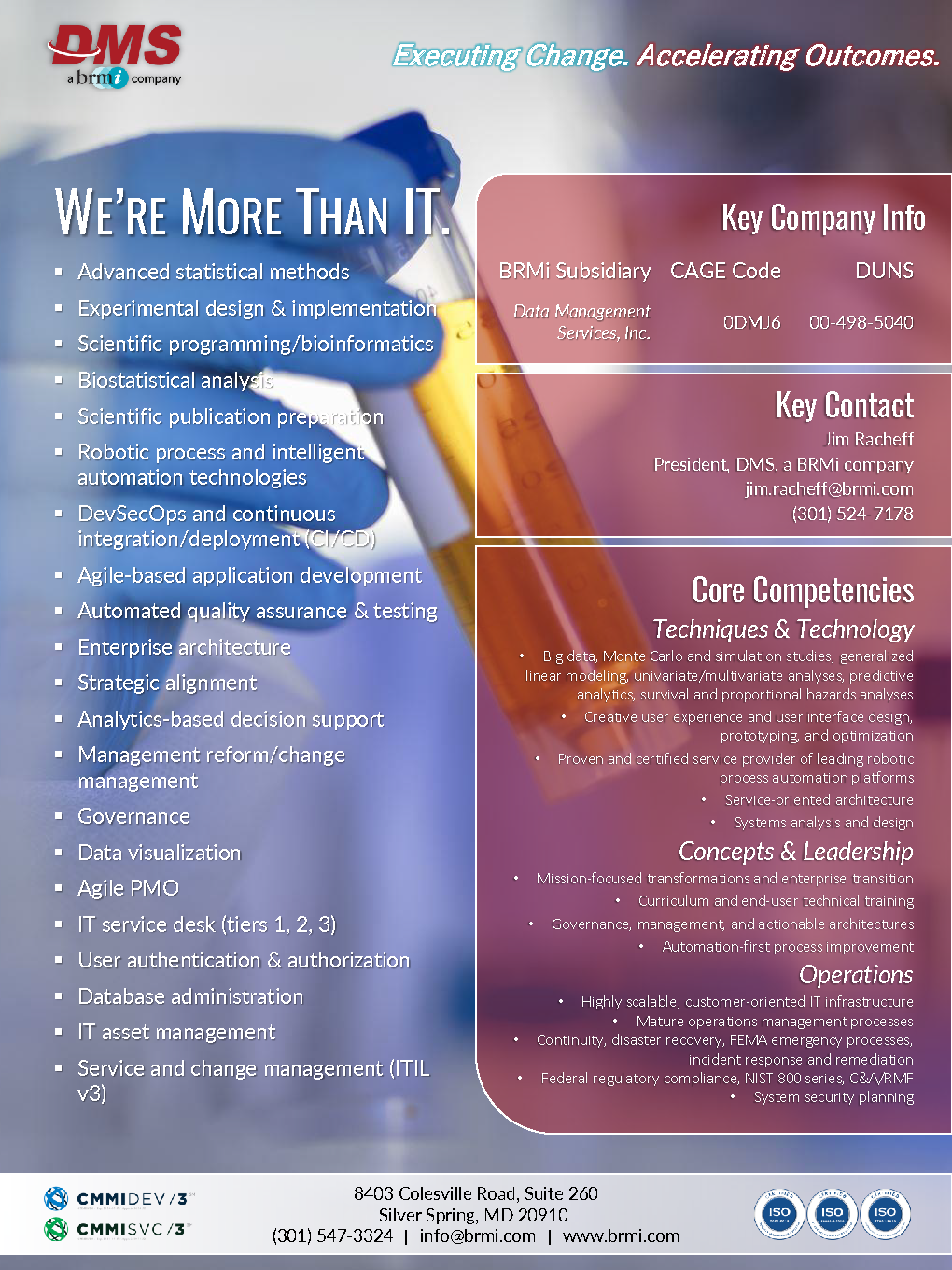 DMS, a BRMi company, is at the forefront of leveraging artificial intelligence (AI) to enhance public health research, particularly in our support of the National Cancer Institute (NCI). Our advancements in applying large language models (LLMs) to structure vast quantities of unstructured clinical trial reports are transforming biomedical research by creating novel datasets that drive scientific discovery. Structuring Unstructured Data with LLMs Clinical trial reports are often complex and unstructured, posing challenges in data extraction [...]