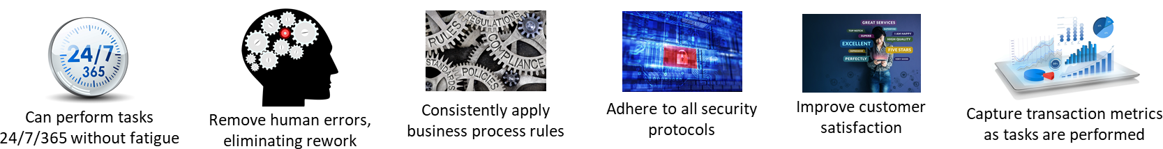 The next step is to automate the streamlined tasks as a proof-of-concept. BRMi’s partnerships with leading RPA tool suppliers enable us to automate selected tasks in a test environment to illustrate outcomes and support a business case for investing in the project. The proof-of-concept reveals value provided by RPA bots in many areas beyond freeing staff from performing redundant tasks. These become powerful elements of your return on investment, or the “ROI,” analyses. They include: